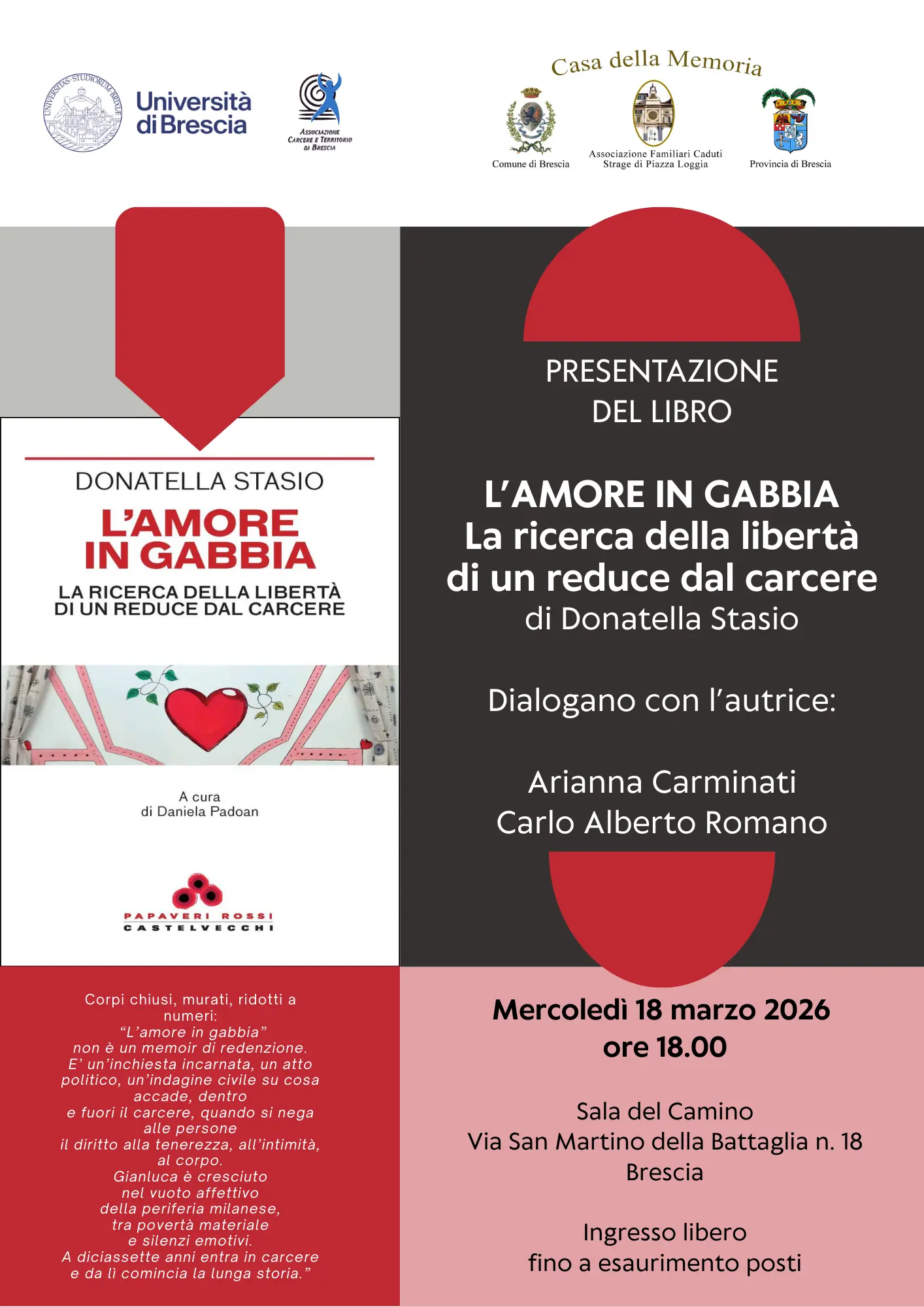 Presentazione del libro "L'amore in gabbia. La ricerca della libertà di un reduce dal carcere" di Donatella Stasio. Dialogano con l'autrice Arianna Carminati e Carlo Alberto Romano