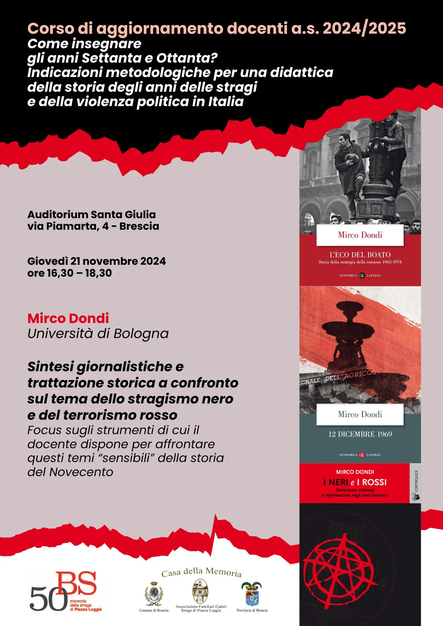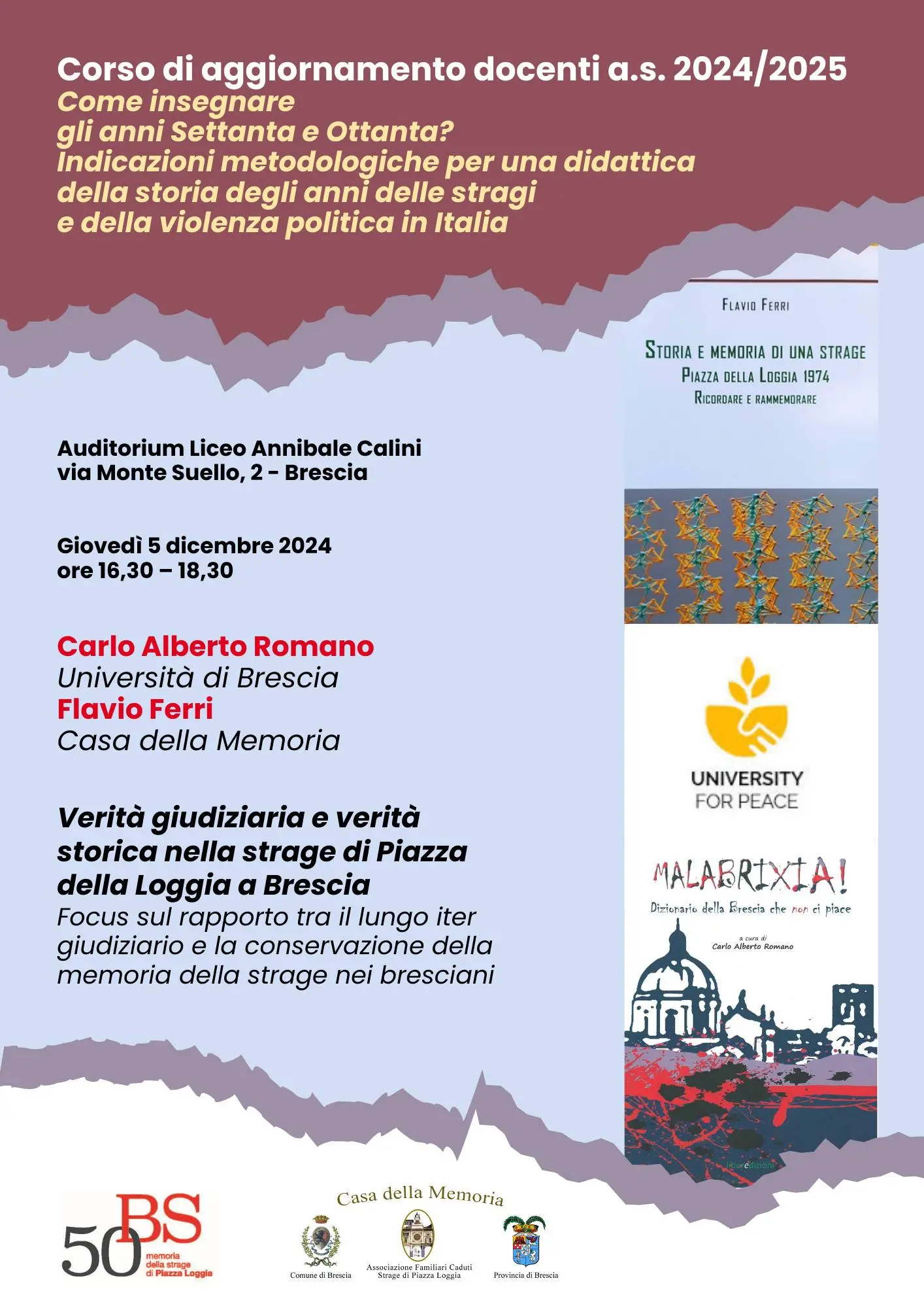 Relatori: Carlo Alberto Romano, Università degli studi di Brescia e Flavio Ferri, Casa della Memoria