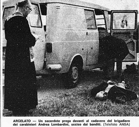 Il 5 dicembre 1974, a seguito di una segnalazione telefonica pervenuta alla stazione dei Carabinieri di Castello d’Argile, in provincia di Bologna, il comandante, Brigadiere Andrea Lombardini (quel giorno a riposo settimanale), rintracciava, insieme al Carabiniere Gennaro Sciarretta, un furgone sospetto fermo su una strada di campagna nei pressi del cimitero di Argelato.