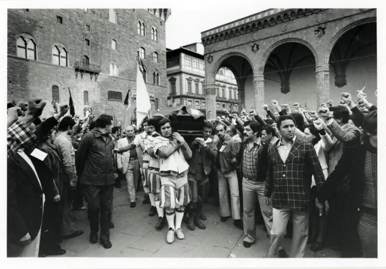 On April 18, 1975, he paraded through the streets of Florence for the death of Claudio Varalli. The realities present in the square are many, from the students, to the ANPI, to the PCI; the former move in a procession during the morning, while the general city event starts in the late afternoon.