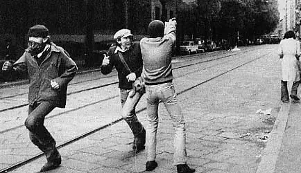 In a short time the demonstration degenerated into a real battle and the autonomous began to open fire on the officers. Agent Custra, lined up with the rest of his department, was hit in the face by one of the bullets exploded with a Beretta pistol 7.65 by the autonomous, who pierced the visor of his helmet, killing him.