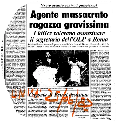 Per di più con risvolti di politica internazionale, perché tutti – polizia, magistrati e giornalisti – crederanno che i Nar fossero a conoscenza del fatto che gli agenti presidiavano l’ambasciata dell’Olp e che quindi abbiano at-taccato questa postazione perché antipalestinesi e amici degli israeliani e dei falangisti libanesi, dai quali, peraltro, alcuni di loro, a cominciare da Sordi, si erano addestrati l’anno prima. Addirittura si ipotizzerà che i Nar volessero uccidere Nemer Hammad, l’uomo di Arafat a Roma, magari su incarico di mandanti internazionali…